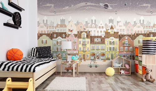 Вы обязательно подружитесь с этими забавными героями. Милые зверюшки живут в своем маленьком городе, в лесу, путешествуют на воздушных шарах и велосипедах, самолетах. Также сюда входят новые детские карты мира. Все дизайны выполнены в нескольких цветовых вариациях, чтобы вы могли подобрать гармоничный вариант для вашего проекта комнаты.